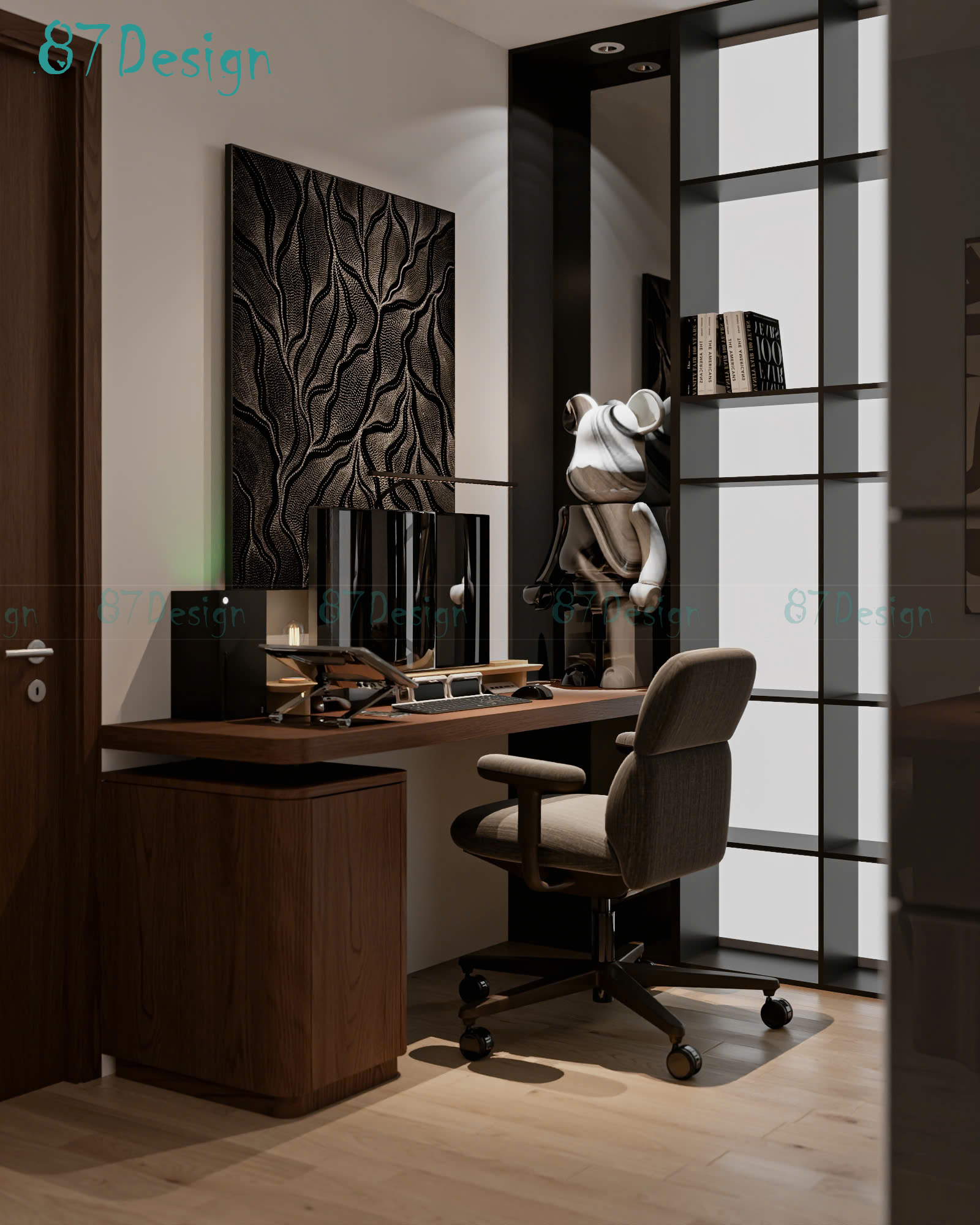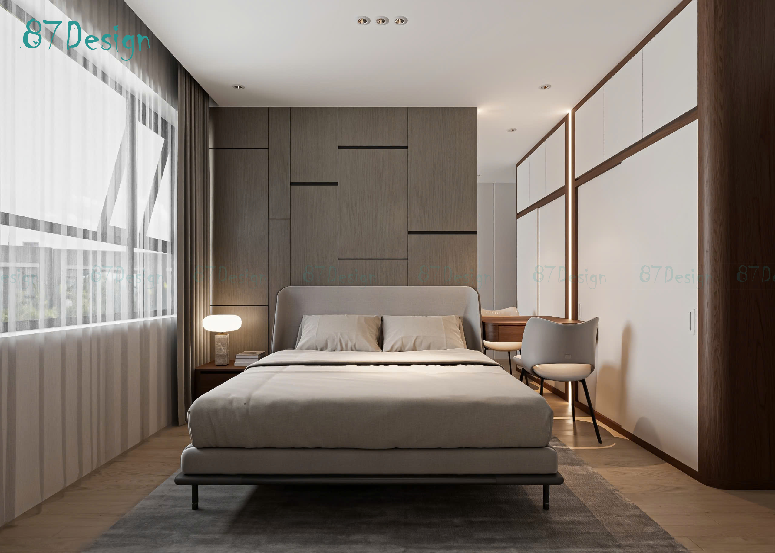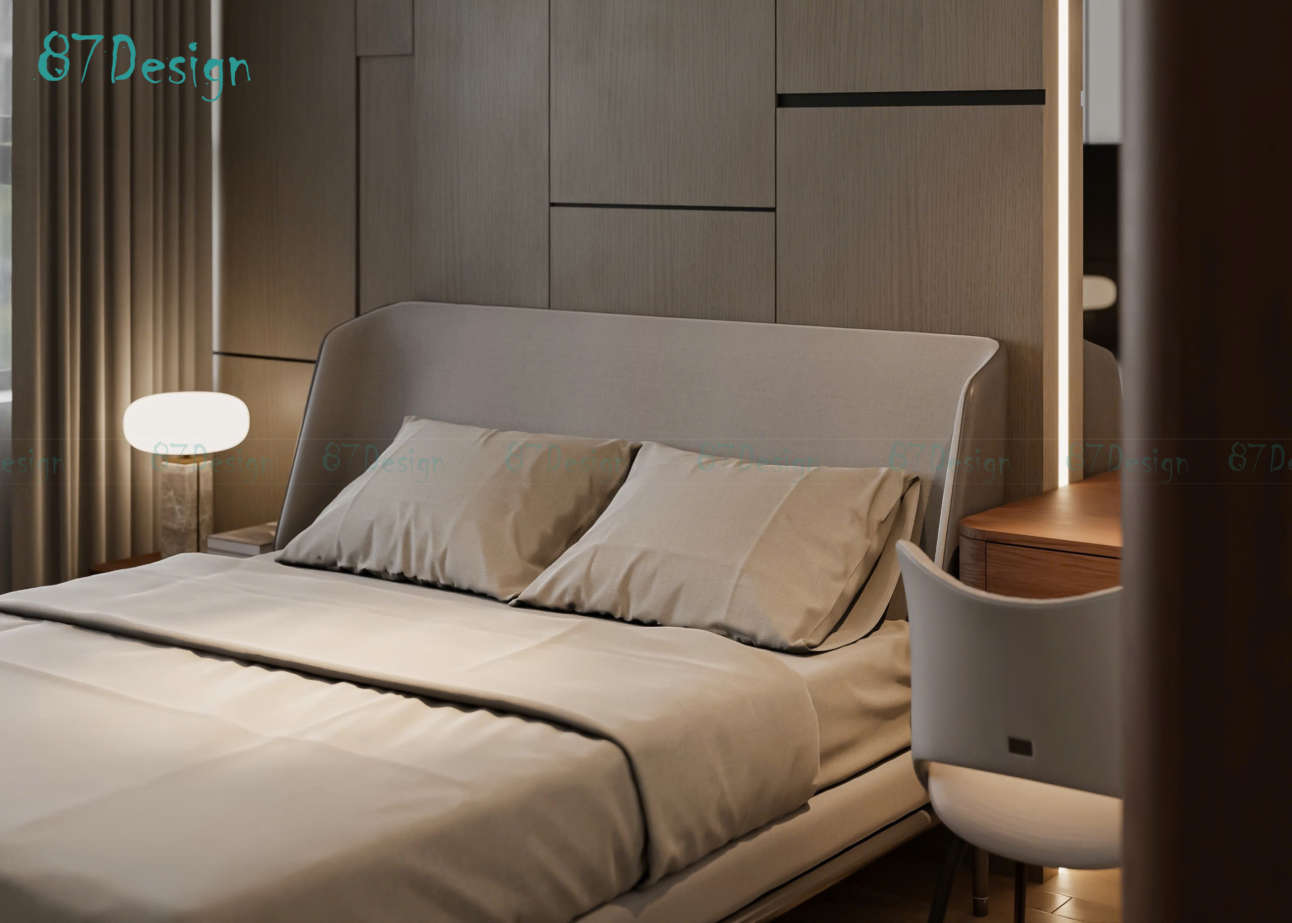 Với thiết kế này là minh chứng hoàn hảo cho sự kết hợp hài hòa giữa phong cách hiện đại tối giản và nét đẹp sang trọng tinh tế. Tinh thần “less is more” (ít là nhiều) được thể hiện rõ nét qua các đường nét thiết kế dứt khoát, gọn gàng và việc loại bỏ hoàn toàn những chi tiết trang trí rườm rà. Thay vào đó, sự tập trung được dồn vào việc tối ưu hóa công năng sử dụng và tạo ra một không gian sống thanh lịch, thoáng đãng.
