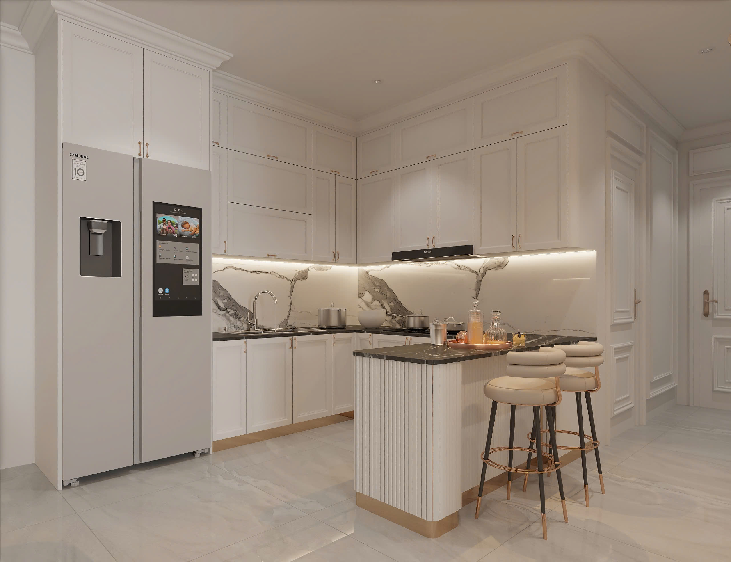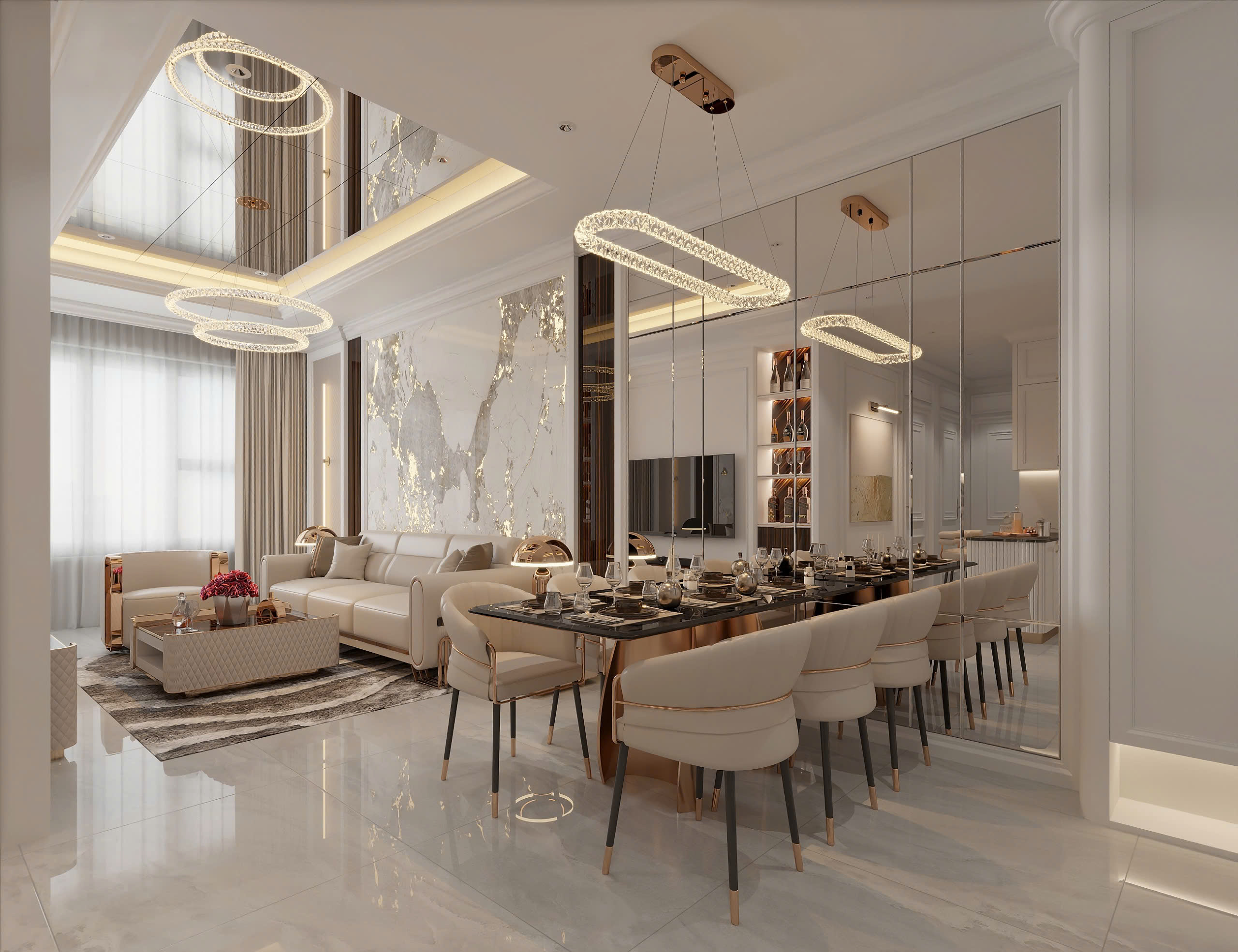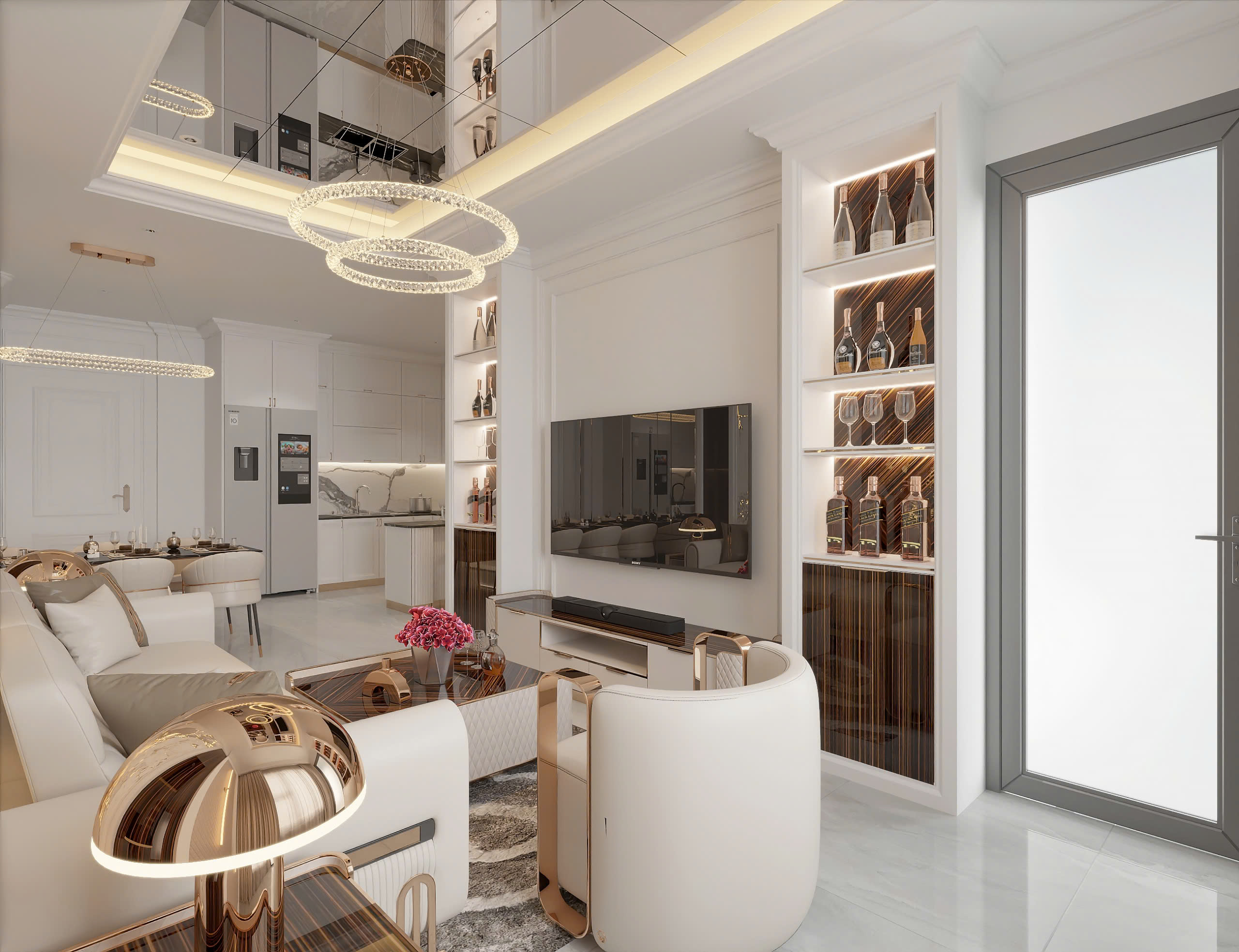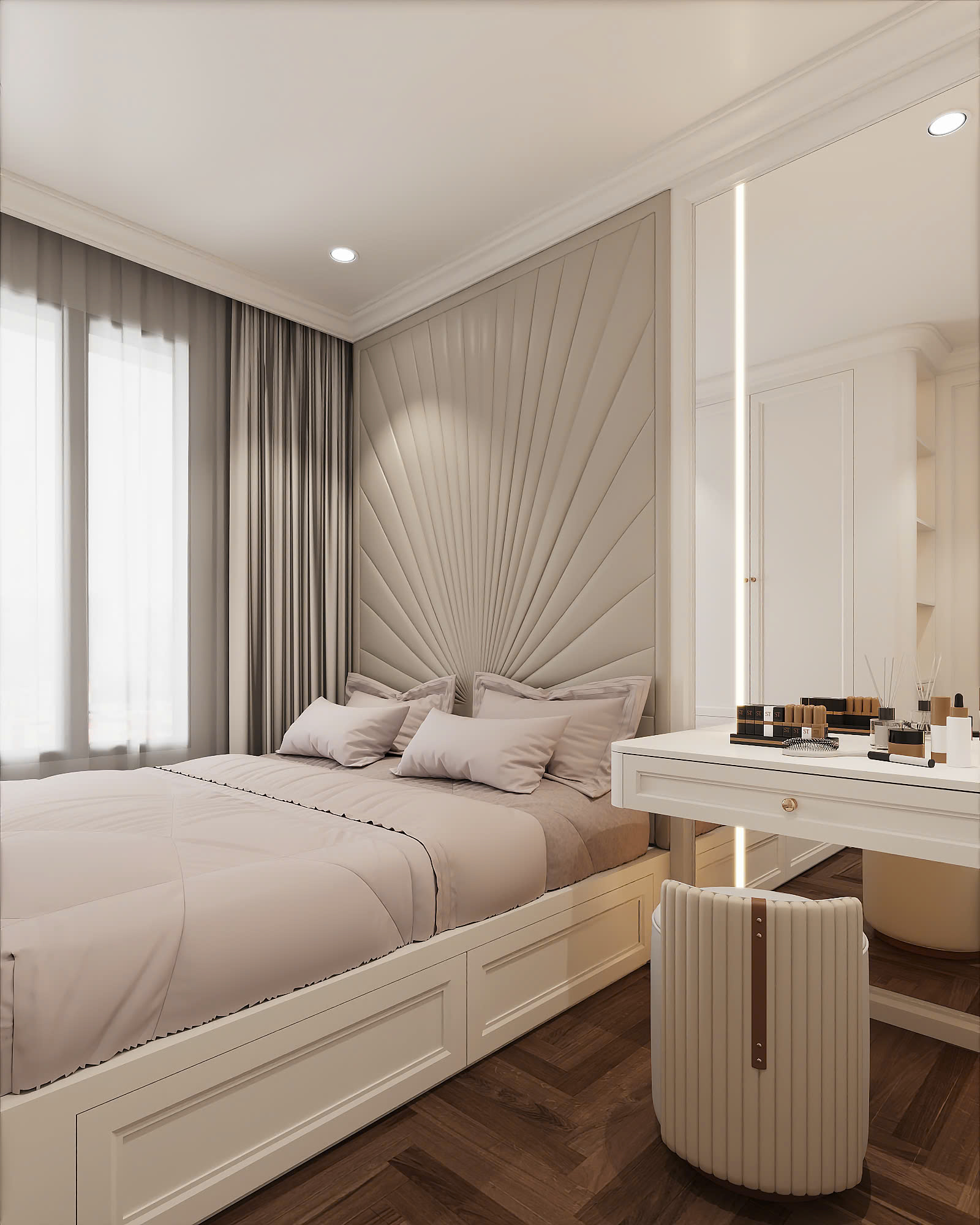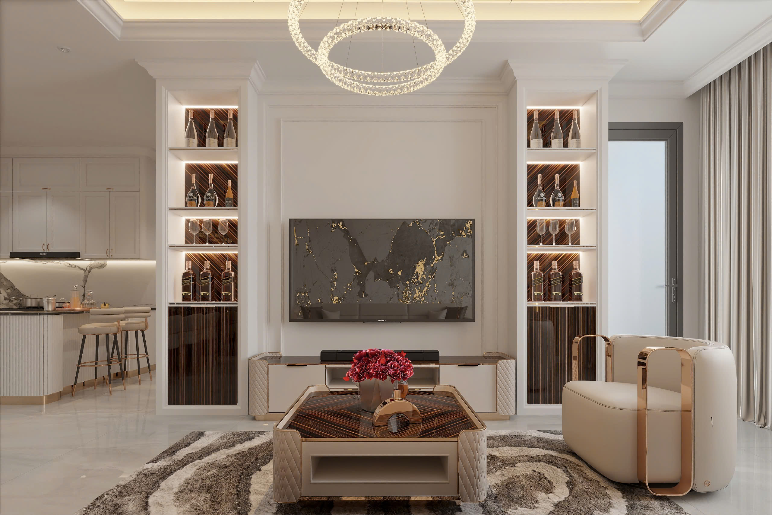- Căn hộ thể hiện rõ nét sự kết hợp giữa phong cách tân cổ điển và hiện đại.